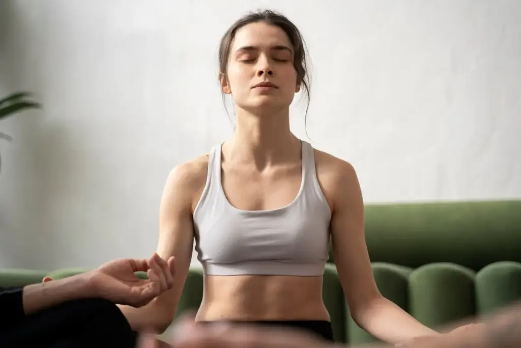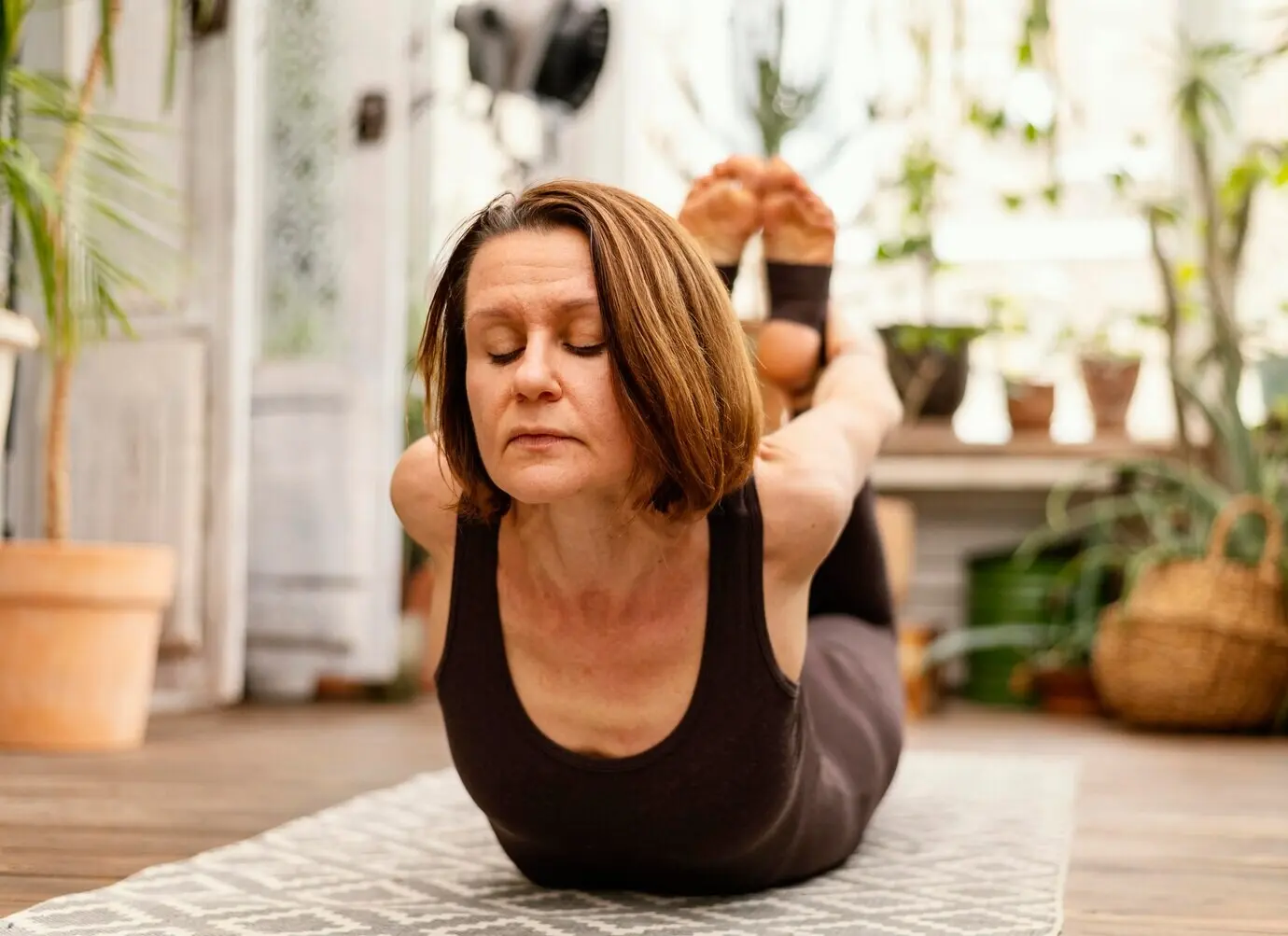 Verteile Gewicht dreidimensional über Ferse, Großzehen- und Kleinzehenballen. Spüre, wie die Quer- und Längsgewölbe wach werden, während die Knie weich nach vorne schauen. Lasse das Brustbein schweben, den Hinterkopf nach oben wachsen und die Schultern schwer nach unten sinken. Atme gleichmäßig, fühle innere Weite, und bemerke, wie diese feine Aufrichtung deinen Atemraum befreit und sofort Energie, Ruhe und Präsenz bringt.